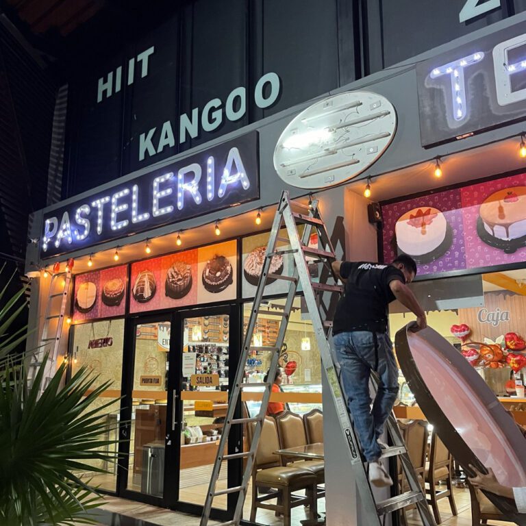 Utilizamos materiales resistentes al clima costero y garantizamos acabados profesionales que elevan la percepción de tu negocio. Controlamos todo el proceso para asegurar calidad, tiempos de entrega y durabilidad.